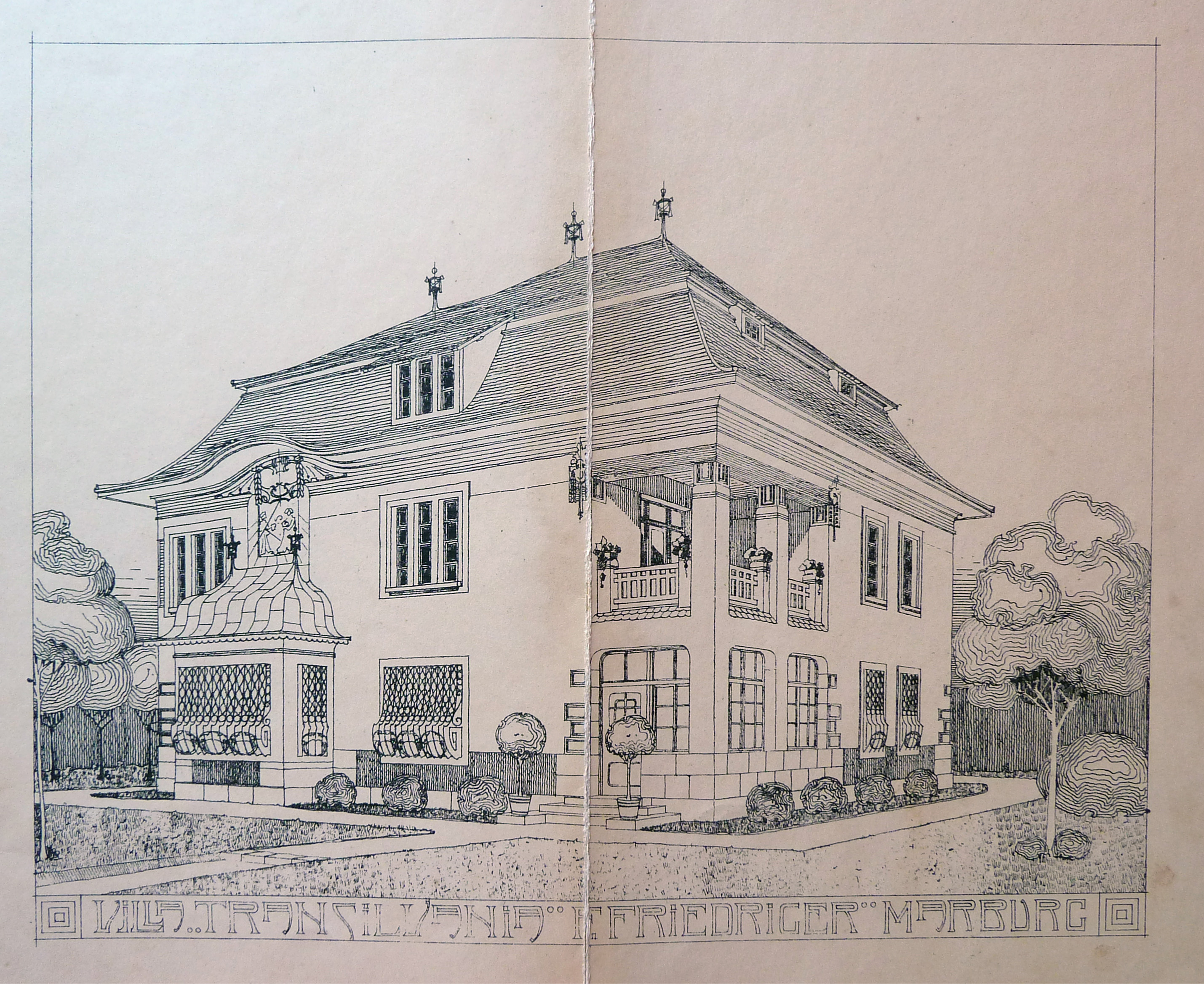 Architect Fritz Friedriger (1859-1922) designed and built the single-storey Neo-Baroque Art Nouveau villa for himself and his family. He named it "Transylvania" after his homeland. The architect, who first trained as a master builder (1878) in native Schorssburg and then studied architecture at the Academy of Vienna between 1883 and 1885 under Professor Theophil von Hansen (1813-1891), moved to Maribor in 1896. In 1897, he received a concession for construction works together with constructor Robert Schmidt. In 1910, Friedriger employed the young architect Max Czeike (1879-1945); it was probably he who provided more modern plans, though still under the influence of Hansen's Historicist villas. During the construction of the building, the Friedriger family had seven members: the architect, his wife Wilhemina Stanek from Ptuj, their sons Fritz, Erich and Williem, and daughters Greta and Hilda. They lived in the villa until 1920, when they moved to Graz, since in Maribor, they were considered unwanted citizens of German descent. They built a new residence in Graz.