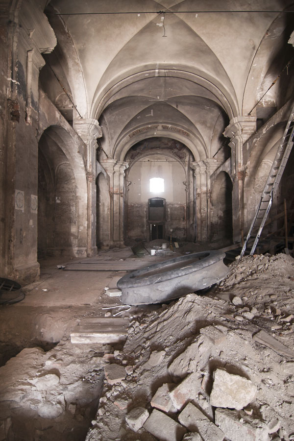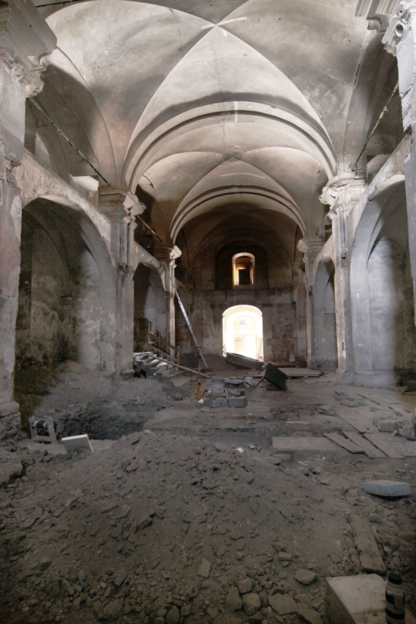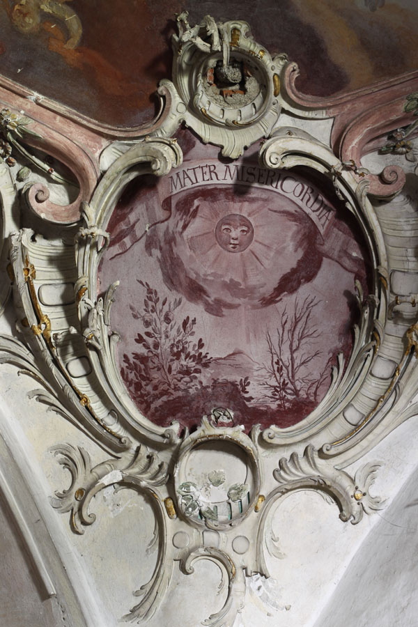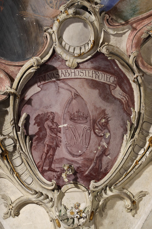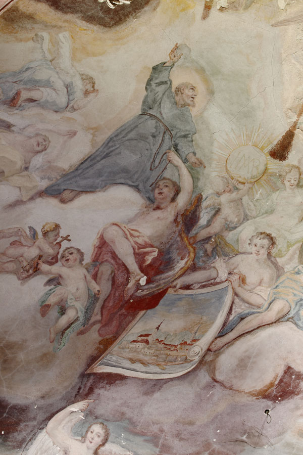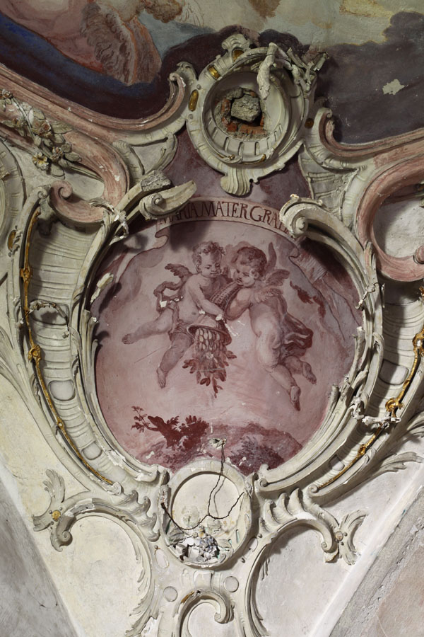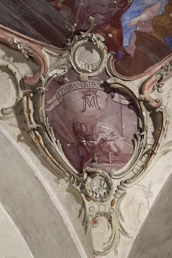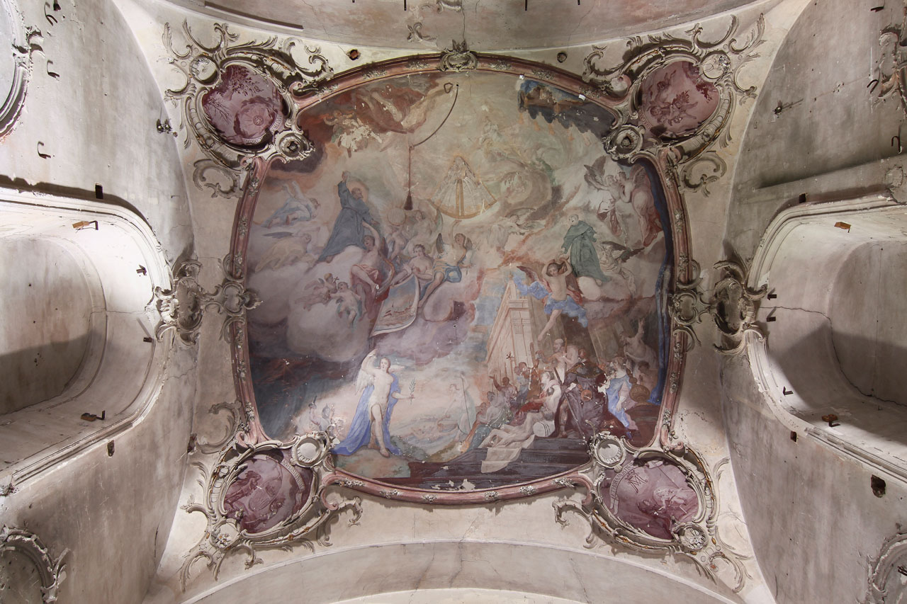 The ceiling fresco in the presbytery, which is encircled by stucco decorations, is the only piece of decoration that has been preserved.