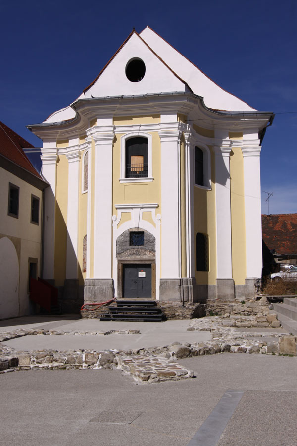 Upon their arrival they took over the existing (probably cemeterial) church. Instead of the original presbytery (which was shaped like an apse or a rectangular), they built a long choir with a polygonal conclusion. The choir was higher than the nave and was covered with two bays of the groined vault. At the same time, they built the monastery beside the church. In the 14th century, they added the chapel of St. Catherine to the north side of the church nave, and in the 16th century, the chapel of St. Anne south of the nave. In the second half of the 16th century, the nave was extended upward. The Baroque renovation around 1710 was the most important for the church's appearance, since they changed the orientation of the building (it is now oriented toward the west), and demolished the Gothic presbytery and the sacristy that had lain south of it. On the western side, they built the new presbytery and sacristy, vaulted the nave, which had had a flat roof until then; instead of the abandoned chapels of St. Catherine and St. Anne, three side chapels with galleries were added on both sides of the nave. The rich Late Baroque façade dates back to 1770. It is possible that it was made by Maribor architect Johann Nepomuk Fuchs (1727-1804), who came to Maribor from Silesia. Originally, a bell tower with an onion roof also "grew" out of the façade (demolished ca. 1785).