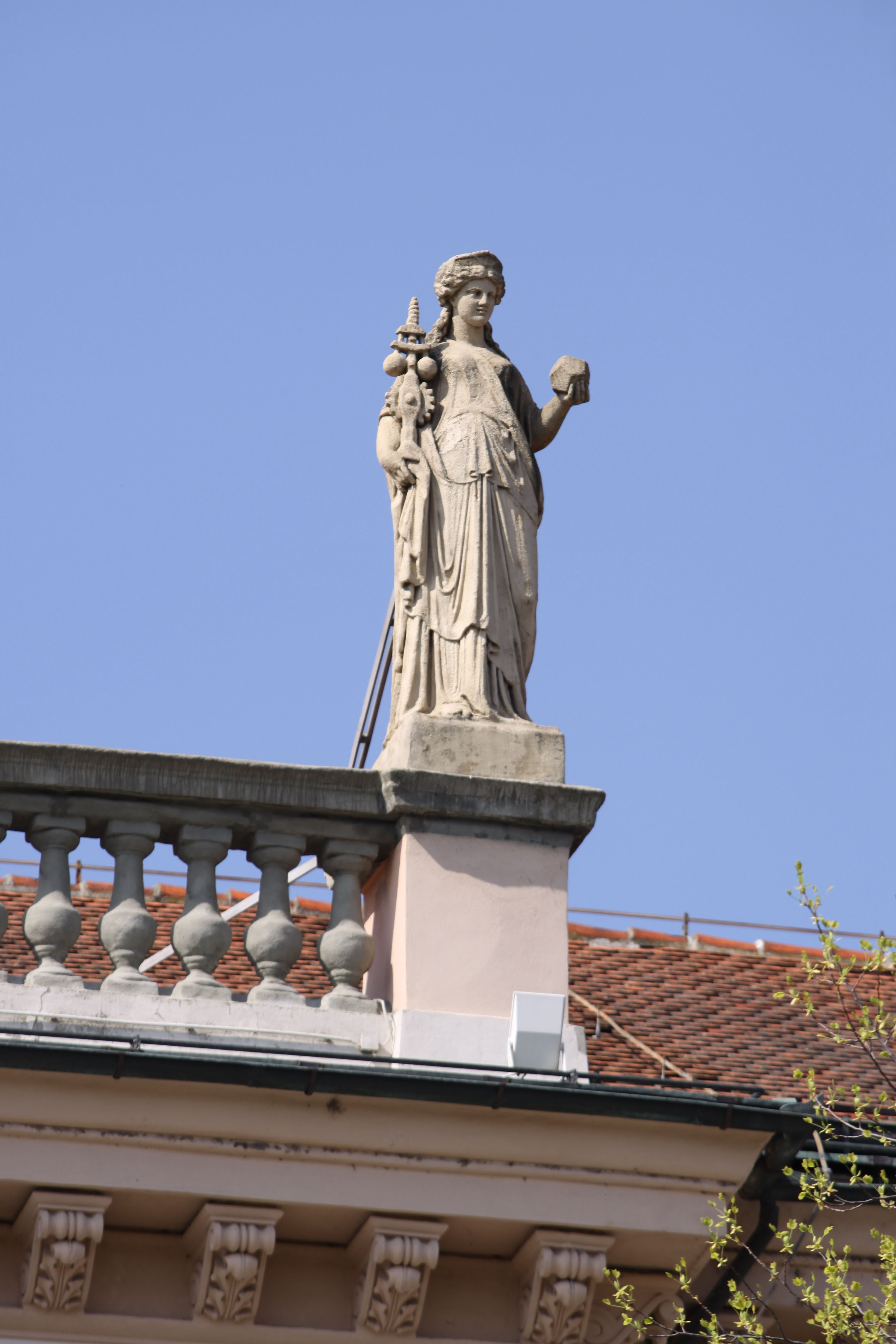 In 1883, a monument dedicated to a known resident of Maribor, vice admiral Wilhelm von Tegetthoff (1827-1871), the victor in marine battles at Helgoland and Lissa, was unveiled in the park in front of the building (present day Trg generala Maistra (General Maister Square)). It was made by sculptor Heinrich Fuss (1845-1913) and it was an exceptional artistic creation, which enriched the vicinity of the school. Tegetthoff's bust and the personifications of the battles at Helgoland and Lissa were removed in 1918, and the column in the 1930s, most probably in 1934, when the construction of the Serbian Orthodox church (church of the prince Lazar, Momir Korunović, began in 1934, demolished in 1941) began in the park. After its removal, the park was re-established; today, the statue of General Rudolf Maister (1874-1934), the work of Vlasta Tihec Zorko, and the monument to journalist Anton Tomšič stand there.