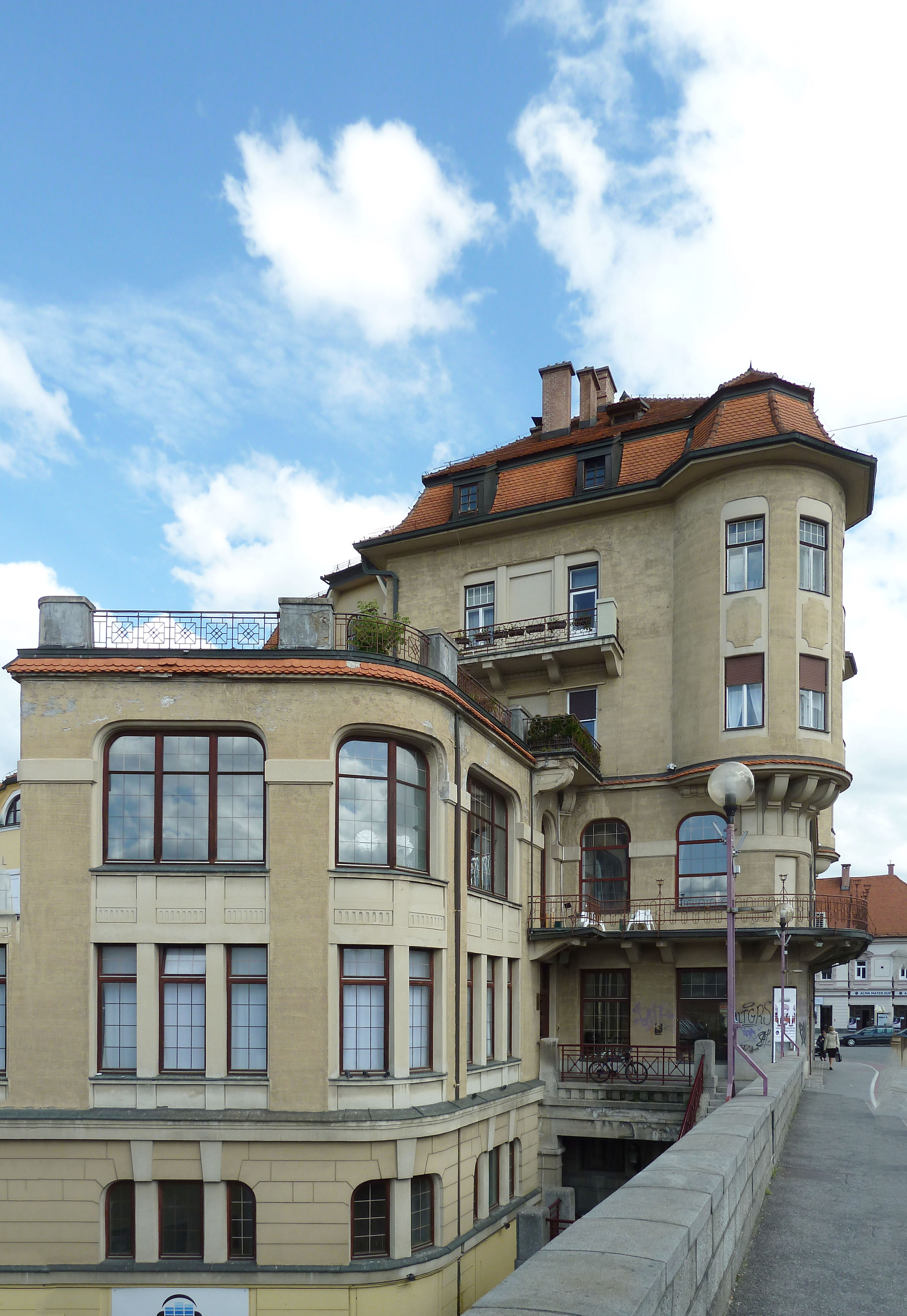 Stavba, zasnovana v historističnem slogu s secesijskimi elementi, stoji na desnem bregu Drave, na vogalu med Glavnim trgom in Starim mostom - z gradnjo slednjega je tesno povezan tudi njen nastanek. Zaradi neugodnega, proti reki močno nagnjenega terena je poslopje zgrajeno na dveh nivojih - osrednji del na nivoju Koroške ceste, ki vodi preko mosta, stranski pa v višini Dravske ceste ob nabrežju. Od tod do vrha mostu vodijo cikcakaste stopnice. Oba dela stavbe sta trinadstropna, osrednji je krit z razgibano mansardno streho, vrh stranskega pa prekriva ravna, ograjena terasa. Osrednji, triosni del glavne fasade, obrnjene proti trgu, je poudarjen s čelom, balkonom in glavnim vhodom v stavbo. Velika, pravokotna okna (v prvem nadstropju so zgoraj zaobljena) so členjena z variacijo geometričnih dekorativnih shem, fasado pa dinamizirajo tudi različni načini ometanja, preprosto členjeni parapeti in kovane ograje. Podobna zunanja členitev se nadaljuje na fasadah celotnega stavbnega volumna. Na vogalih ob Koroški cesti so robovi zgradbe v višini stanovanjskih nadstropij poudarjeni z zaobljenima konzolnima pomoloma, vzdolž prvega nadstropja pa se razteza balkon.