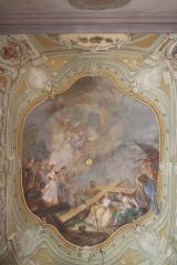 V iluzionistično naslikanem arhitekturno-dekorativnem okviru je upodobljen prizor Najdenje pravega križa, na katerem je bil križan Jezus Kristus. Dogodku prisostvuje sv. Helena s spremstvom.