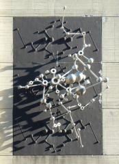Atomska doba, 1973, kovina na betonski podlagi, 840 x 460 x 170 cm, Pročelje Jemčevega bloka na Prešernovi 10b