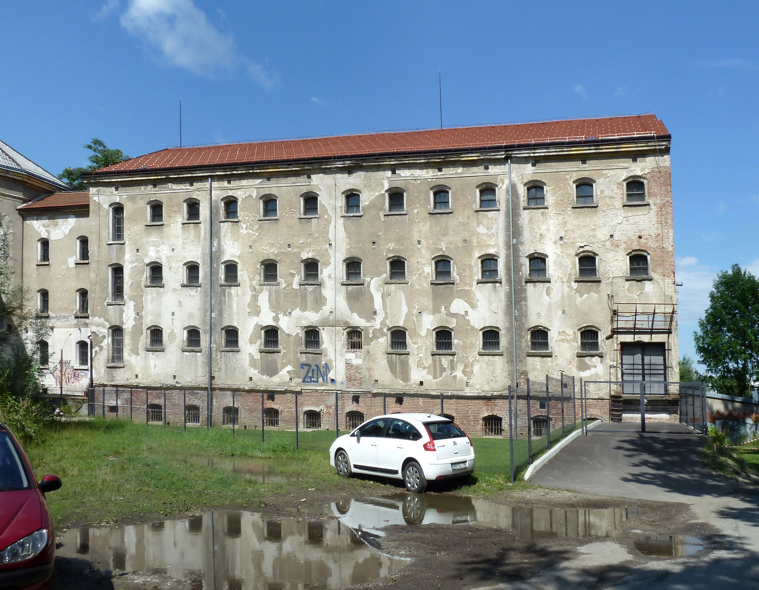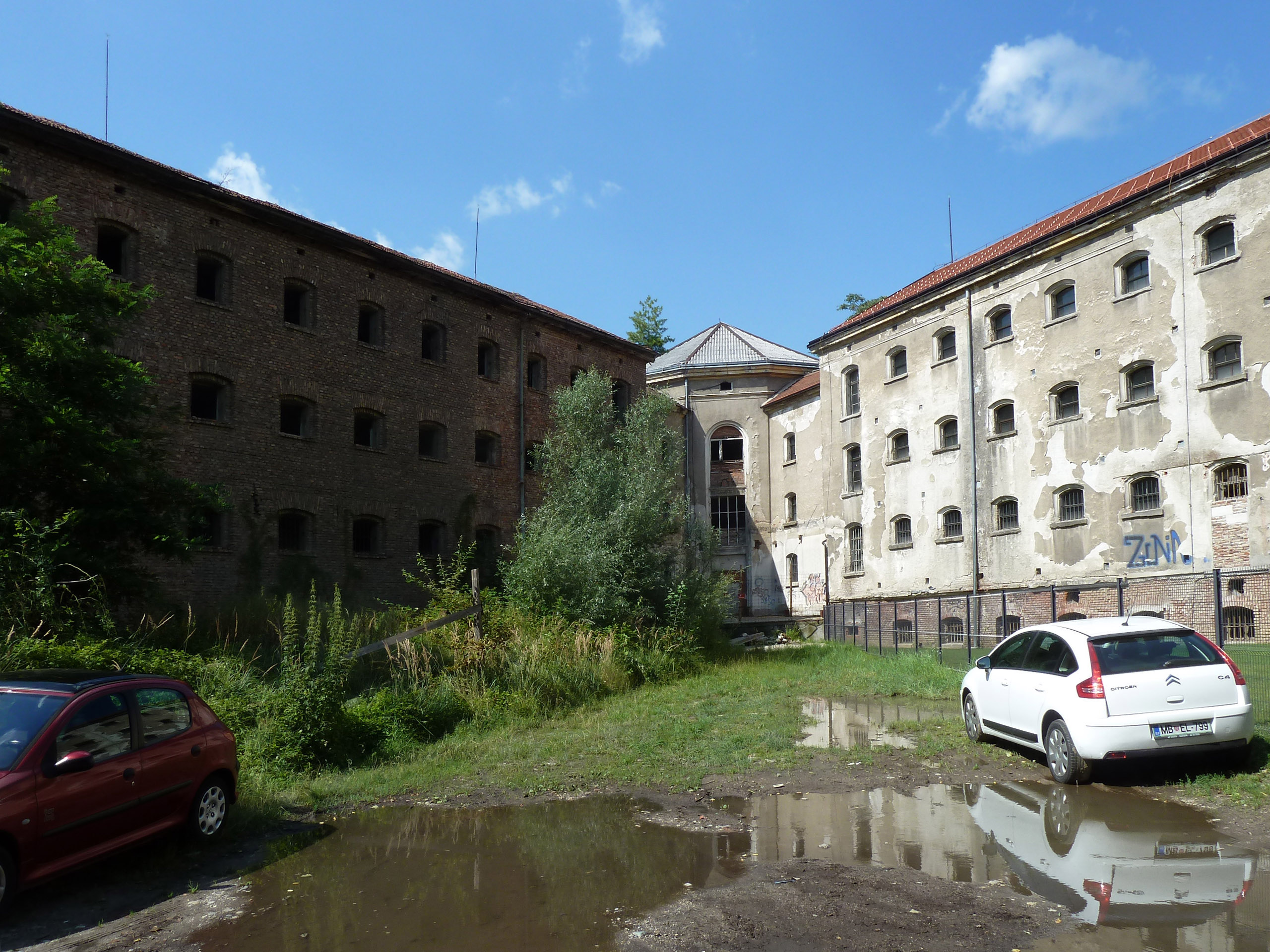 Nekdanja Cesarsko-kraljeva moška kaznilnica je bila po naročilu Ministrstva za pravosodje zgrajena med letoma 1884 in 1889 po načrtih inženirja R. von Neubauerja, gradnjo je vodil graški nadinženir Franz Maurus. Relativno velika stavba je bila postavljena na tedaj nepozidanem desnem bregu Drave, na območju med starim (tedaj državnim) in železniškim mostom. Kaznilnica je imela za tiste čase značilno zvezdasto zasnovo; iz osrednjega trakta, v katerem sta bili med drugim katoliška in pravoslavna kapela, je na južni strani izhajalo pet večjih in trije manjši štirietažni trakti z zaporniškimi celicami. V stavbi je bilo prostora za 542 kaznjencev. V času po dograditvi je veljala za najmodernejše zaporniško poslopje v Avstro-Ogrski in je bila vzor za druge sorodne stavbe. V zavezniških bombnih napadih v zadnjih letih druge svetovne vojne (1944-1945) je bila stavba delno porušena, po vojni so rekonstruirali jugozahodni trakt, oba vzhodna (glavnega in stranskega) pa podrli. Po preselitvi zaporov iz Maribora na Dob v Mirnski dolini leta 1963, je stavba služila za skladišča in poslovne prostore, za muzejske namene pa je bila urejena celica, v kateri je bil zaprt Josip Broz-Tito. S podrtjem obzidja in opustitvijo vrta se je začela degradacija okolice, ki jo je po letu 2000 še pospešila izgradnja nakupovalnega središča Europark v neposredni bližini. Nekdanja Kaznilnica je danes prazna in propada.