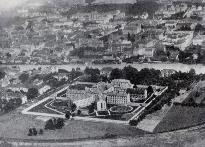 Stavbni kompleks Kaznilnice je nekoč obajalo obzidje z geometrično urejenim vrtom. Osnovo kompleksa je predstavljal osrednji trakt, ki je potekal v smeri sever-jug in je imel na južni strani petosminski zaključek; njegova oblika izhaja iz cerkvenih prezbiterijev. Iz njega so izhajali pravokotno zasnovani štirietažni trakti s celicami (pritličje + tri nadstropja), ki jih je z osrednjim delom povezoval ožji prehod. Na severni strani se je osrednjega dela dotikal vhodni trakt, ki je bil naslonjen na kaznilniško obzidje.