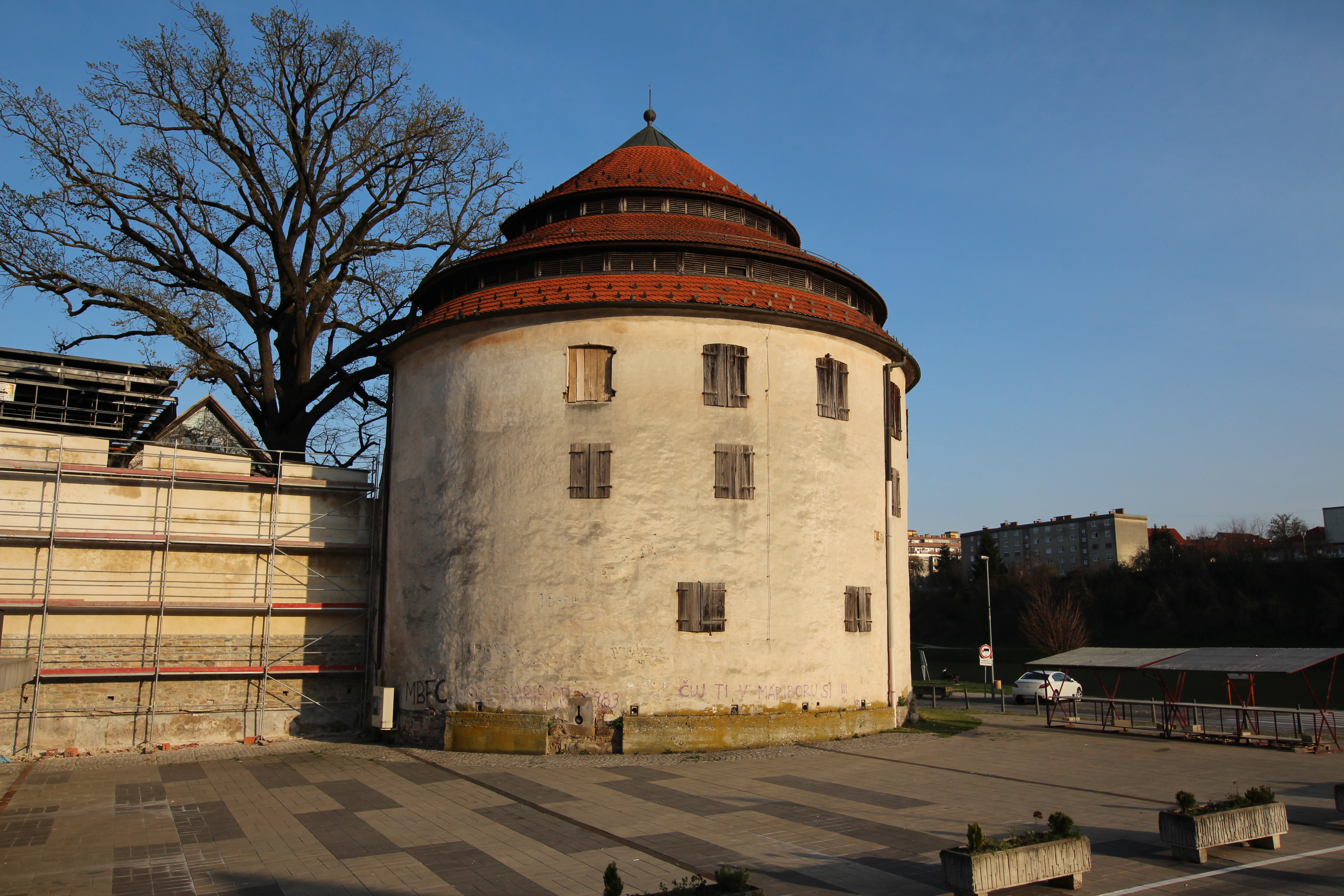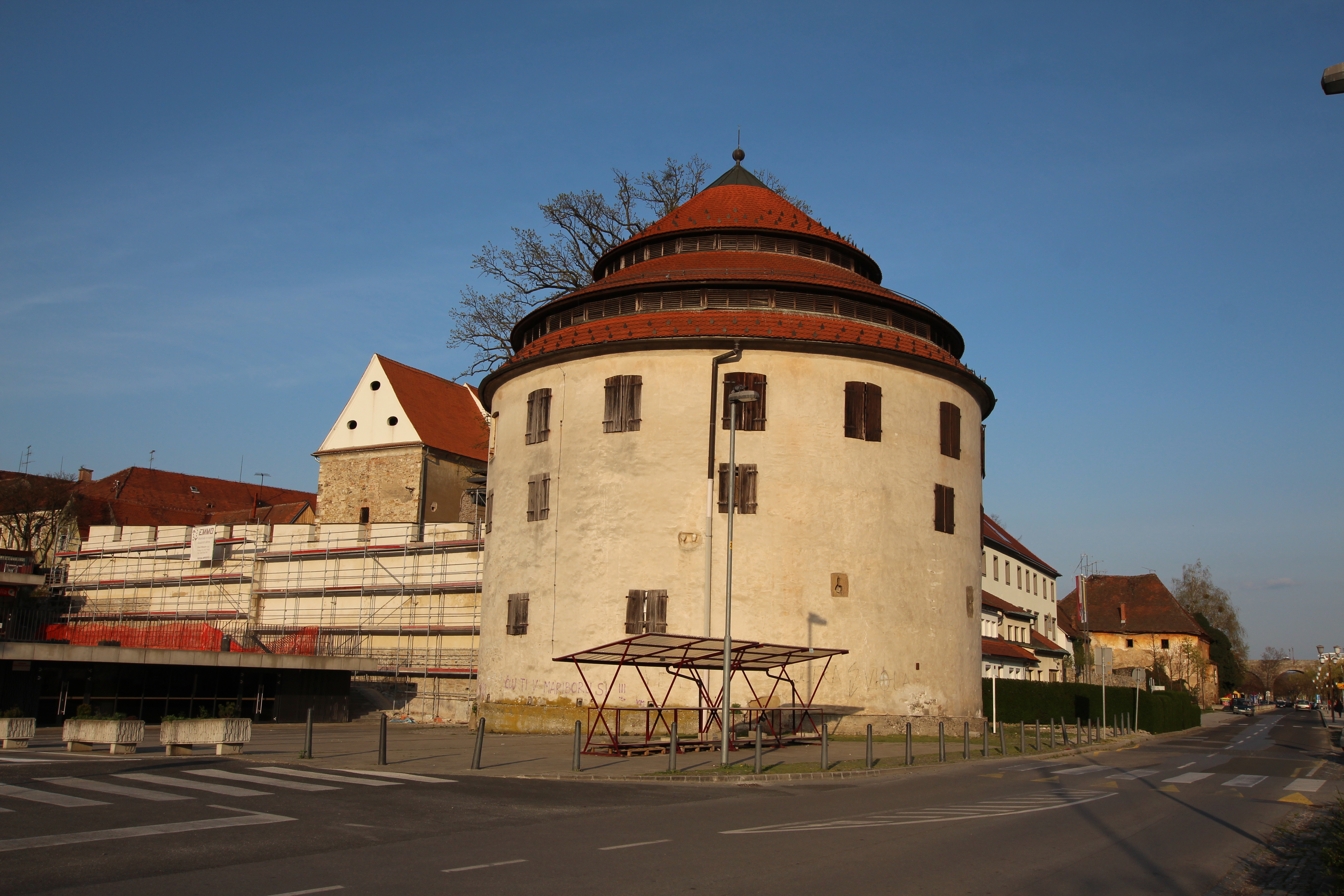 Mariborčani so mestno obzidje začeli graditi kmalu po pridobitvi mestnih pravic (kot mesto je Maribor prvič izpričan leta 1254). V letih med 1255 in 1275 so mesto obdali z obzidjem štirikotne oblike s stranicami, dolgimi približno 500 metrov. Obzidje, ki je zamejilo prostor med reko Dravo in današnjimi Strossmayerjevo, Gregorčičevo in Ulico škofa Maksimilijana Držečnika, je prekinilo stare prometne poti in spodbudilo nastanek nove prometne ureditve z novo oblikovano ulično mrežo v vzhodnem delu mestnega jedra. Ob koncu 18. stoletja so mestno obzidje zaradi širitve mesta porušili, njegovi ostanki skupaj s štirimi obrambnimi stolpi pa so se ohranili do danes.