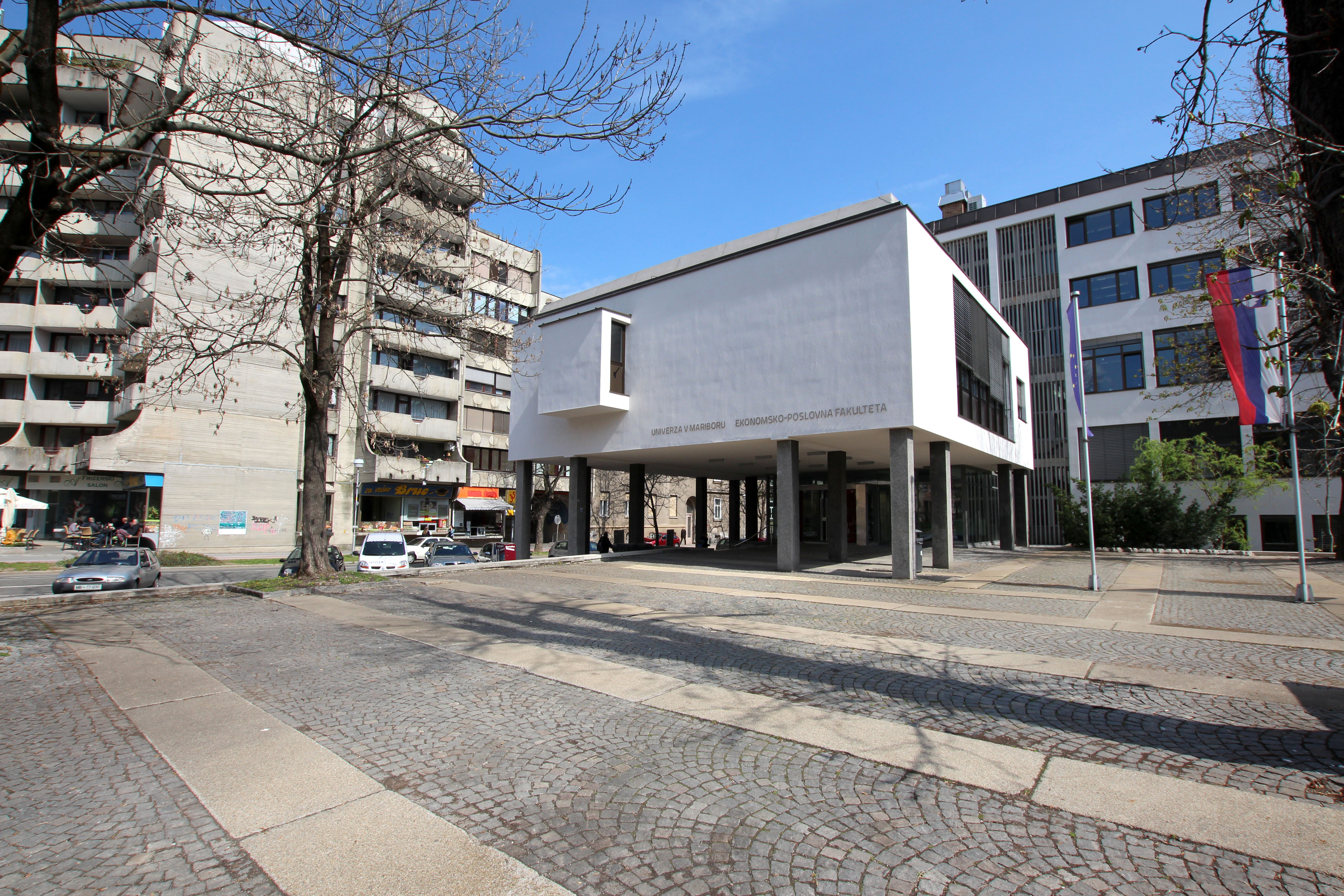 Branko Kocmut (1921-2006) je kot eden najvidnejših mariborskih arhitektov druge polovice 20. stoletja bistveno vplival na urbanizem povojnega Maribora, ki je v letih 1944-45 doživel zavezniška bombardiranja in izgubil velik del svojega mestnega tkiva. Eno od načel pri obnovi mesta je bila ohranitev starega mestnega jedra, v katerem so uničene dele zapolnjevali po sistemu »plomb« in se strogo držali starih gabaritov, medtem ko so bile novogradnje predvidene na robu starega mesta, kjer pa so prav tako veljala stroga pravila glede višine novih objektov. Tem načelom sledi tudi zasnova Višje ekonomsko-komercialne šole, zdaj Ekonomsko-poslovne fakultete Univerze v Mariboru, ki jo je Branko Kocmut načrtoval leta 1960, gradnja pa je bila končana v dveh letih. Gre za prvo novogradnjo v okviru takrat še Združenja visokošolskih zavodov v Mariboru, ki je leta 1975 prerasel v Univerzo v Mariboru; stavba, ki velja za eno najbolj značilnih mariborskih modernističnih zgradb, ima tako tudi simbolni pomen v okviru zgodovine mariborskega visokega šolstva.