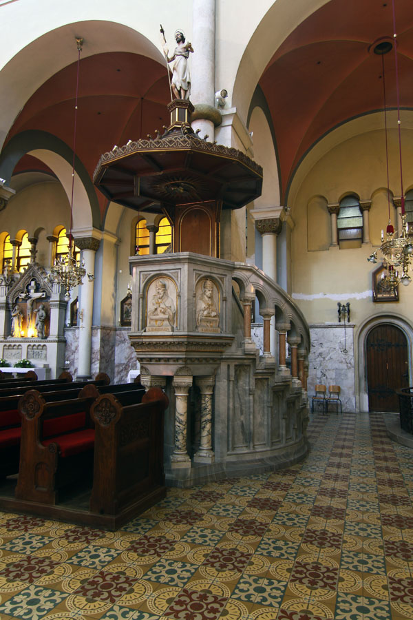 Marmorno prižnico je cerkev dobila leta 1919, načrte zanjo je izdelal Jordan, kamnoseška dela sta prispevala Karel Kocijančič st. in Karel Kocijančič ml., reliefi štirih cerkvenih očetov pa so delo Kupowskega. Jordan je načrtoval tudi ostalo opremo, med drugim orgelsko omaro, klopi, spovednice, obhajilno mizo, kropilnike, krstilnik, posodo za blagoslovljeno vodo, izdelal pa je tudi predlogo za vzorce na tlaku. Sedanji rezljani križev pot je novejši, leta 1938 ga je izdelal podobar Miloš Hohnjec iz Celja.